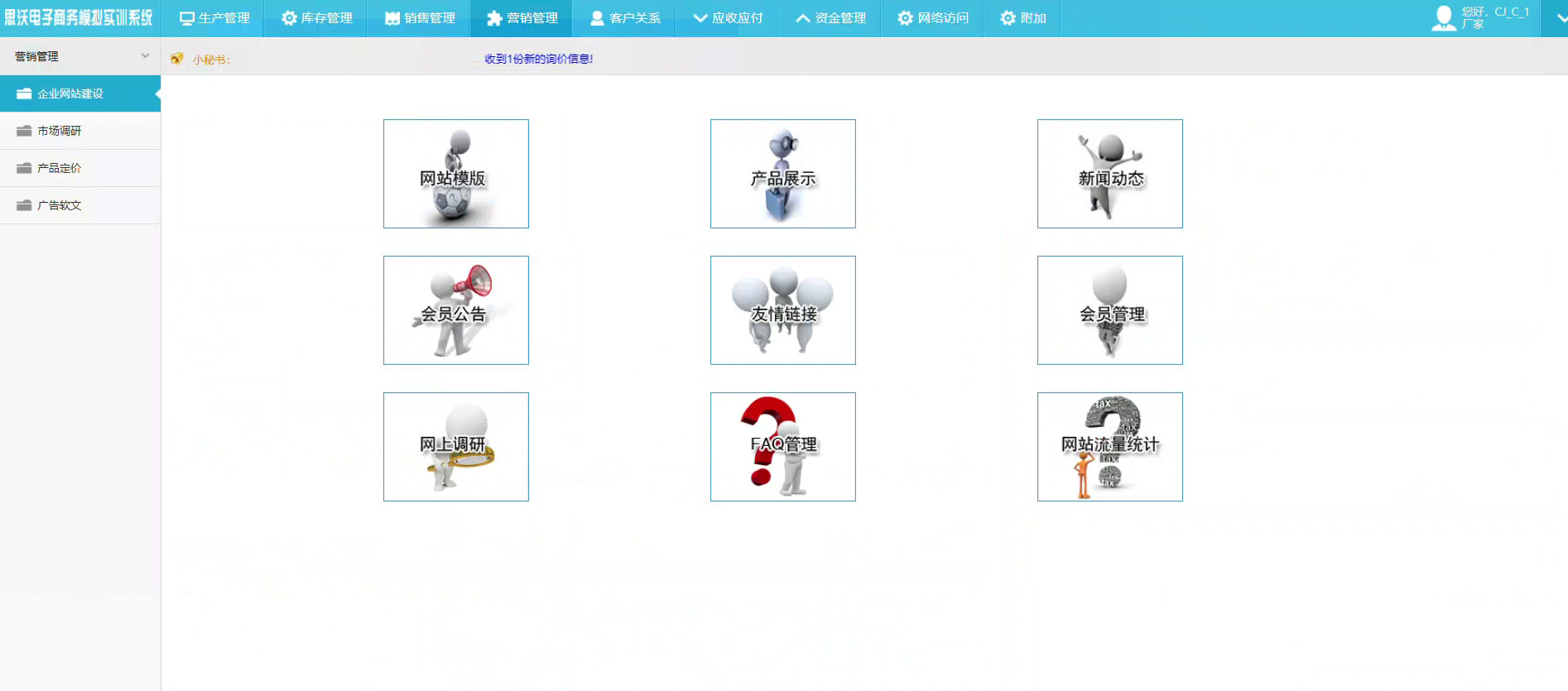 還原(yuan)真實(shi)網(wang)絡營銷生態,包含商貿網(wang)、網(wang)上商城(cheng)、拍賣網(wang)、門戶(hu)型網(wang)站等平臺載體(ti),同時集成搜索引(yin)擎推廣、Email 營銷、企業官(guan)網(wang)運營等實(shi)用工具,讓學生掌握(wo) “平臺搭建(jian) + 流量獲取 + 用戶(hu)轉化” 的全(quan)鏈路營銷方法(fa)。
